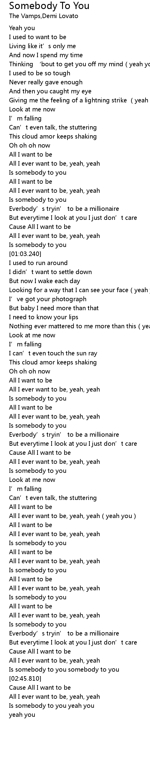 | [02:05.940] | All I ever want to be, yeah, yeah yeah you |