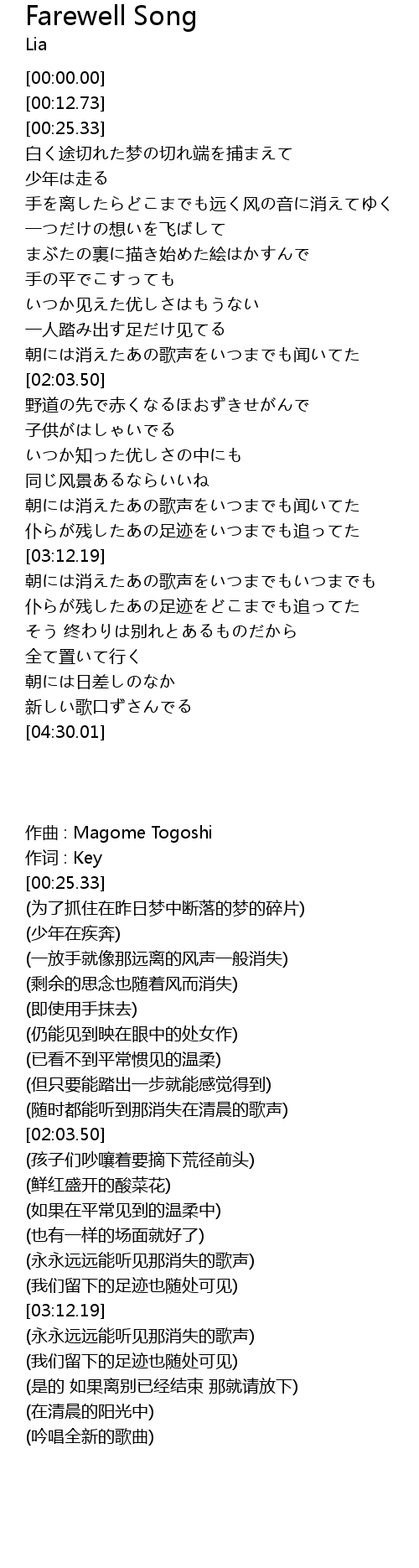 | 歌曲 | Farewell Song |