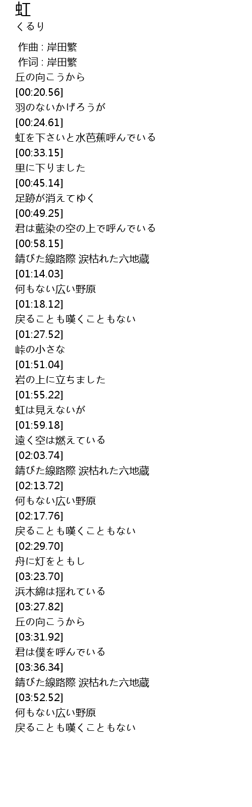 | [00:25.16] | 虹を下さいと水芭蕉呼んでいる |
