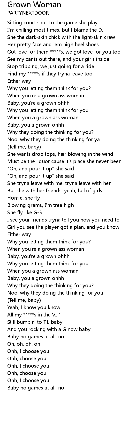 Baby, you're a grown ohhh |