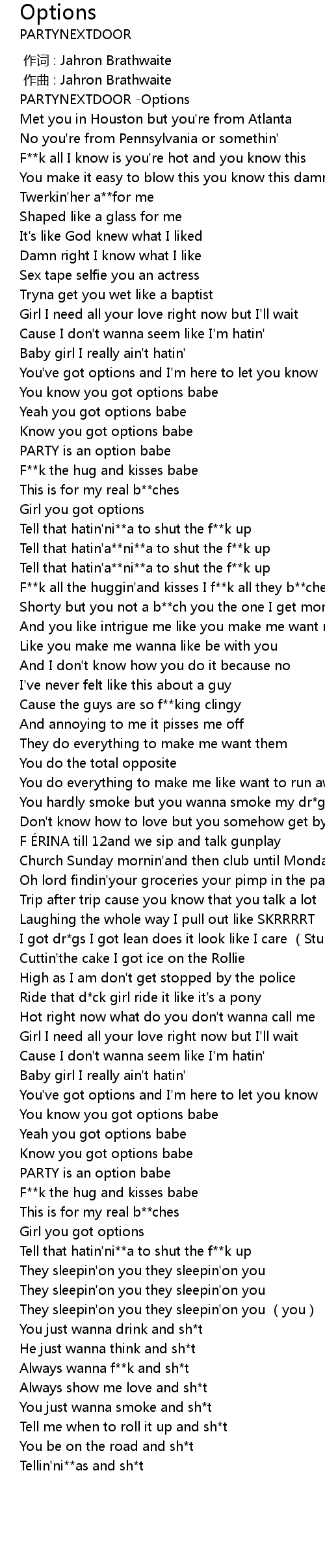 | [00:00.18] | PARTYNEXTDOOR Options |