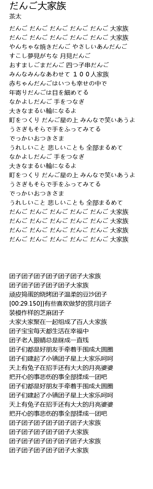 | [00:00.000] | だんご だんご だんご だんご だんご 大家族 |
