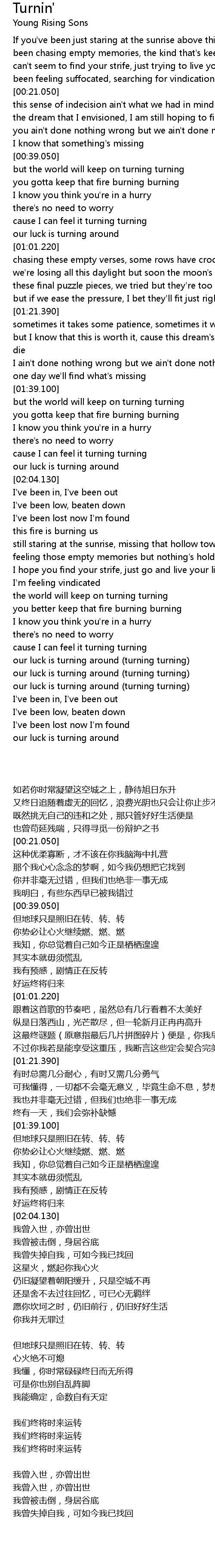 cause I can feel it turning turning |