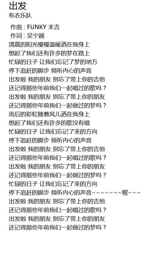 | [03:02.550] | 出发啦 我的朋友 别忘了带上你的吉他 |
