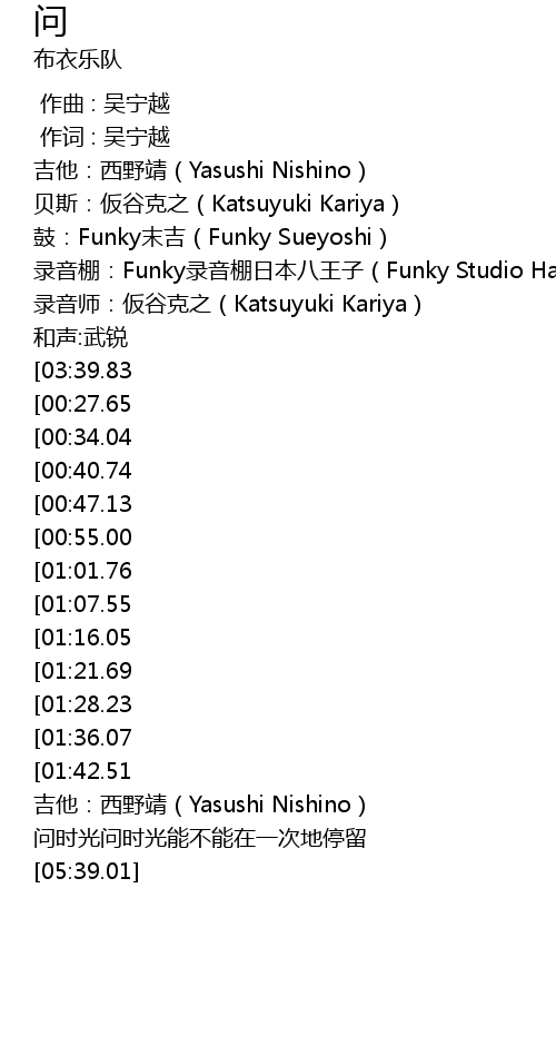 | [00:03.48] | 吉他:西野靖(Yasushi Nishino) |