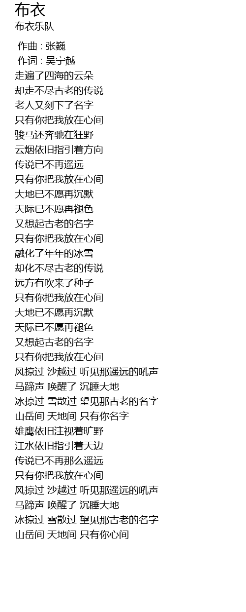 | [04:32.57] | 山岳间 天地间 只有你心间 |