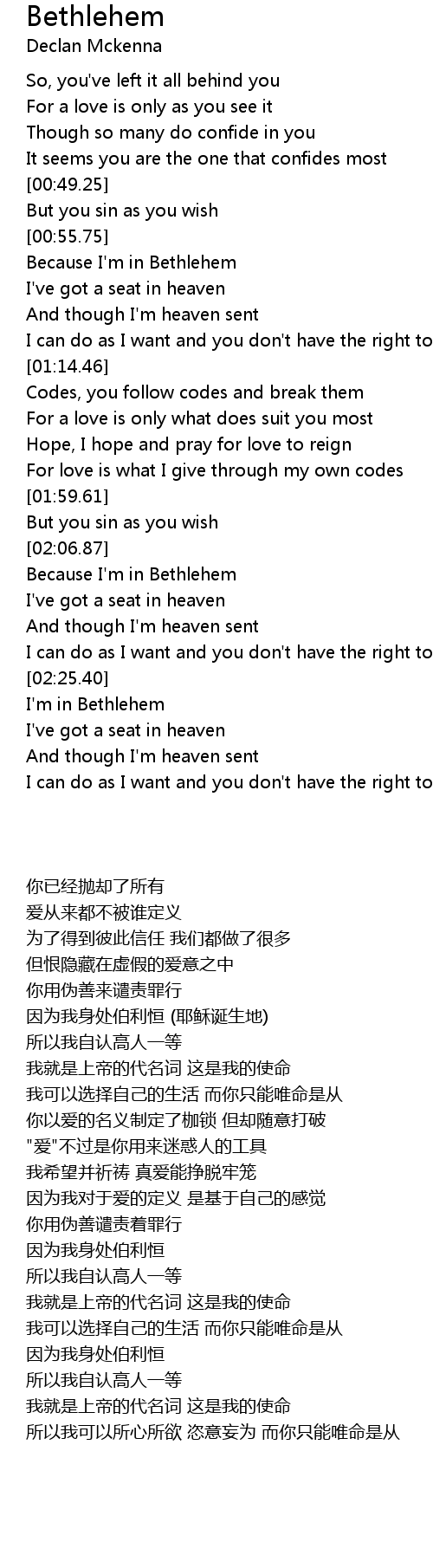 Because I'm in Bethlehem |