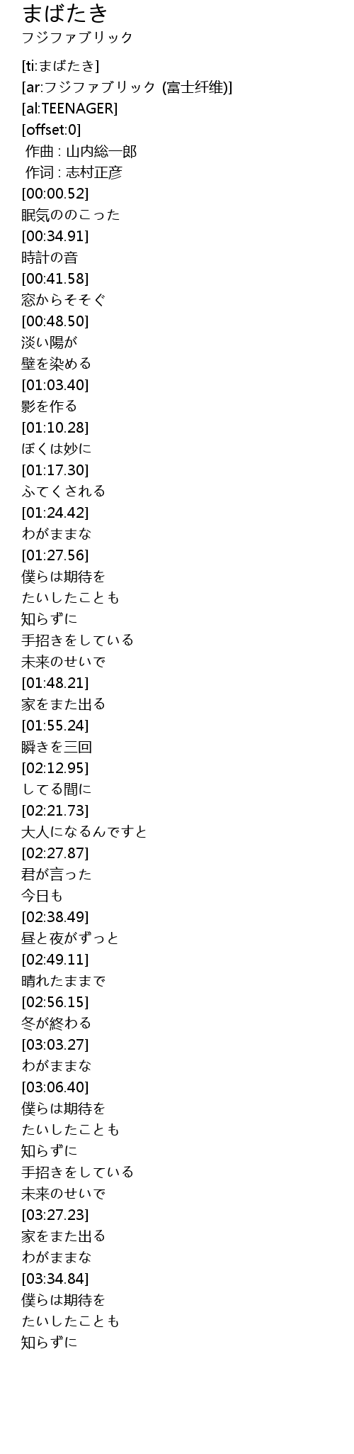 | [00:00.00] | 作曲 : 山内総一郎 |