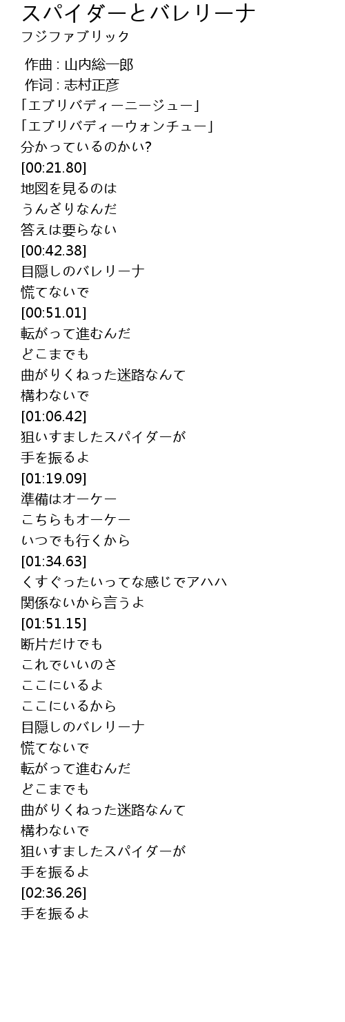 | [00:12.22] | 「エブリバディーウォンチュー」 |
