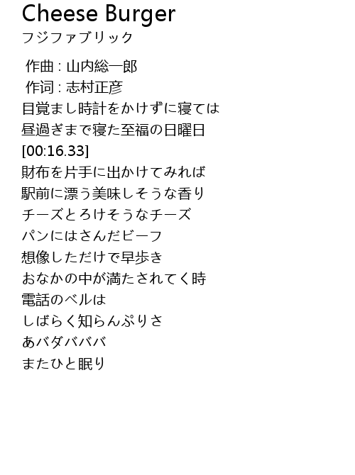 | [00:32.73] | チーズとろけそうなチーズ |