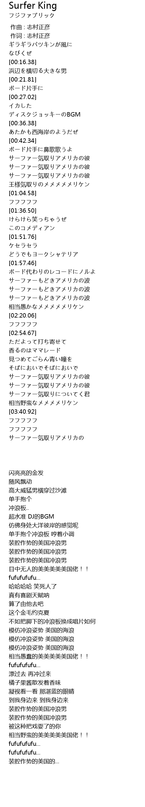 | [02:08.01] | サーファーもどきアメリカの波 |