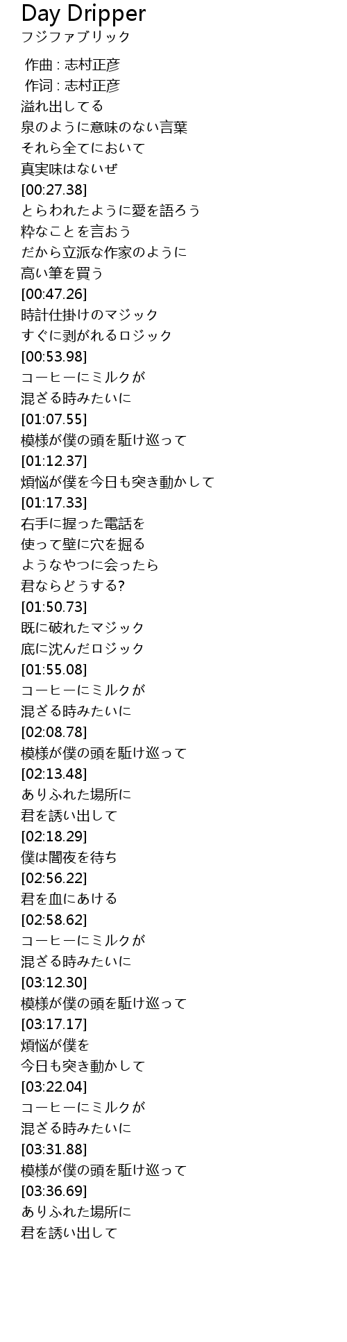 | [03:13.52] | 模様が僕の頭を駈け巡って |