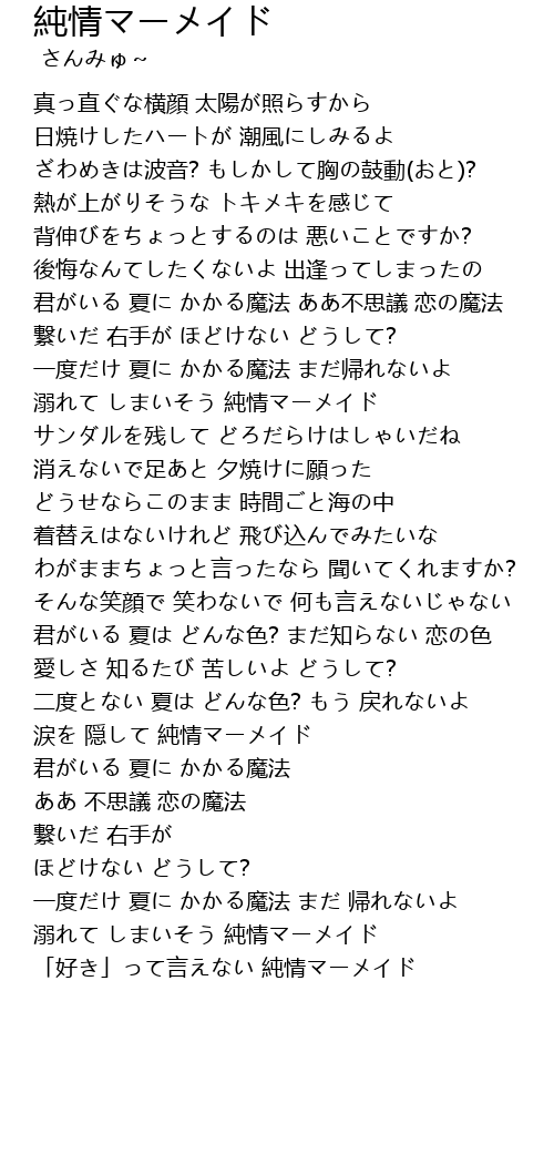 | 二度とない 夏は どんな色? もう 戻れないよ | |