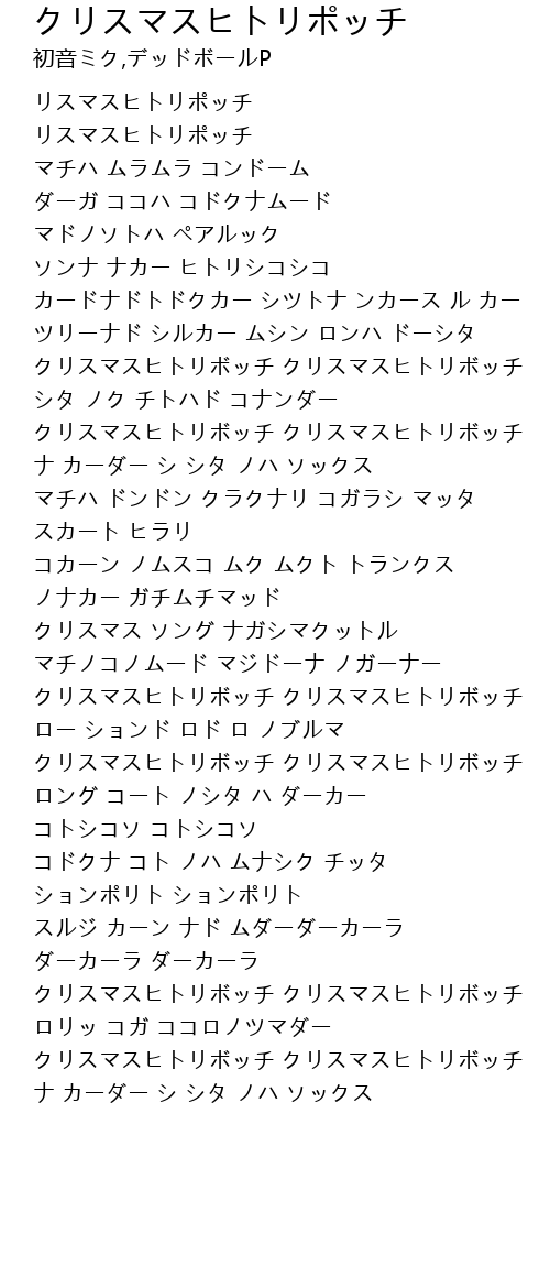 [01:08.90] クリスマスヒトリボッチ クリスマスヒトリボッチ