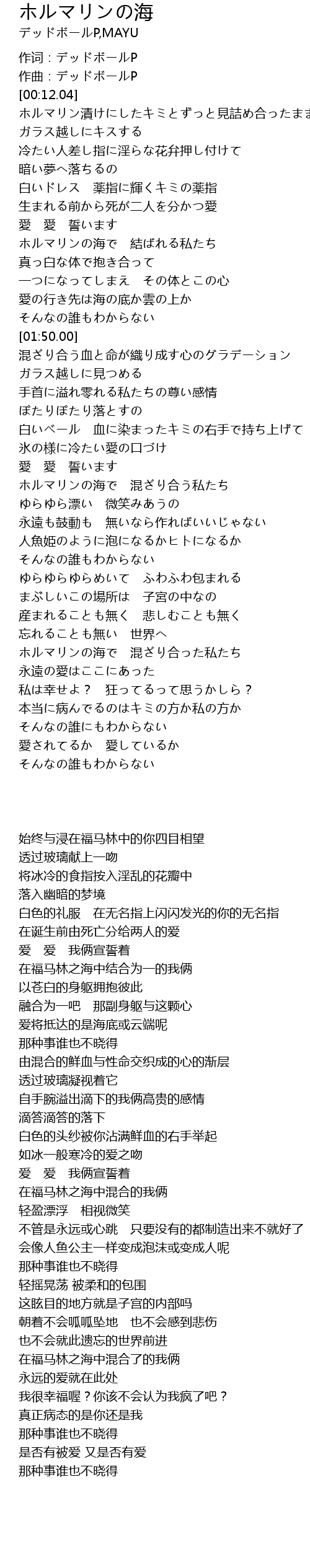 | [02:54.02] | ホルマリンの海で 混ざり合う私たち |