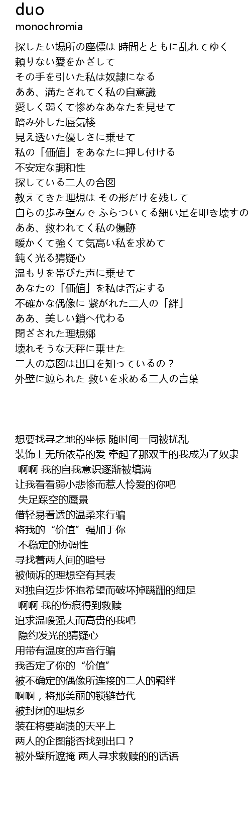| 歌曲 | duo |