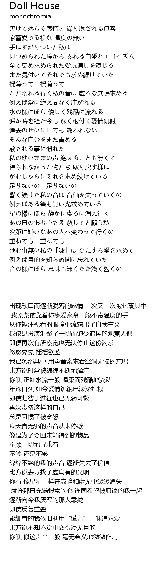 | [00:53.97] | 全て集め求められた愛玩道具を演じる |