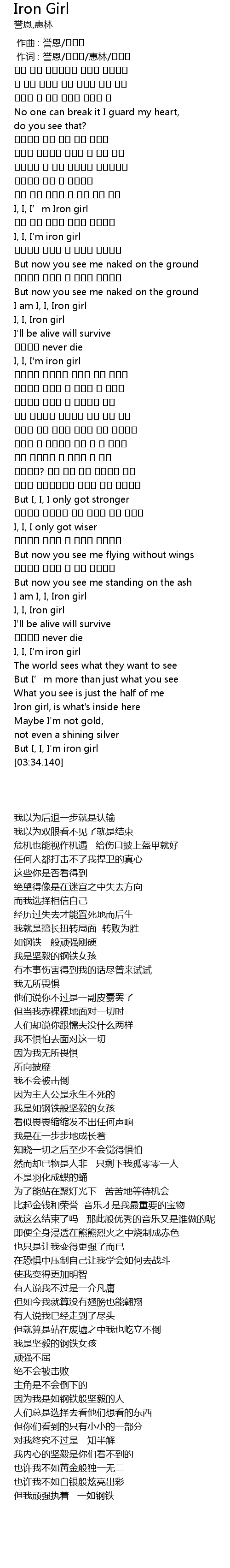 | [03:25.290] | But I, I, I' m iron girl |