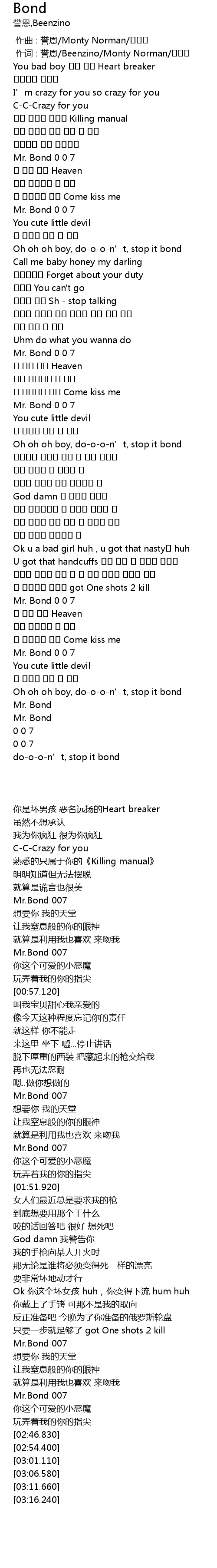 | [00:33.630] | Mr.Bond 007 |