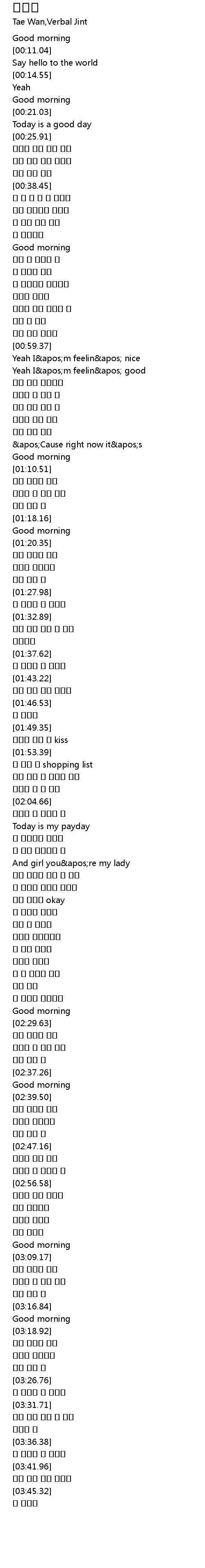 | [00:29.53] | 일어나 지금 좋은 기분 |
