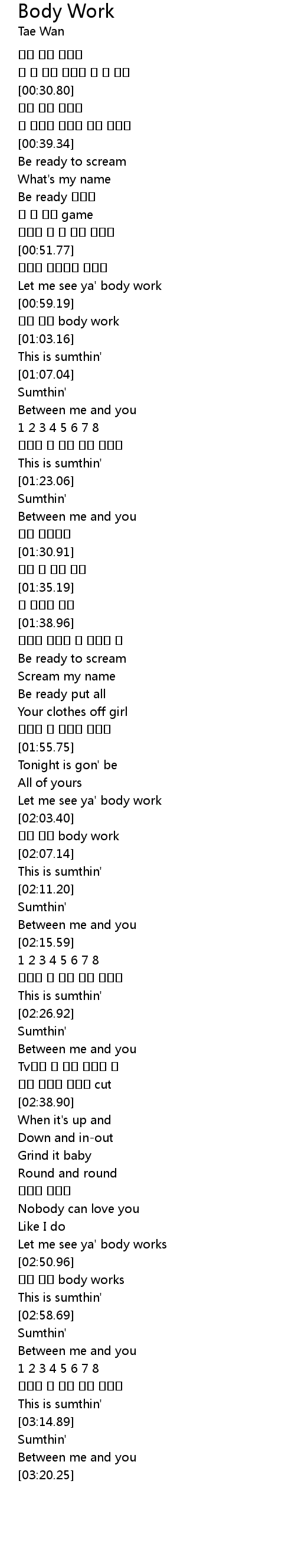 | [01:00.12] | 둘만 하는 body work |