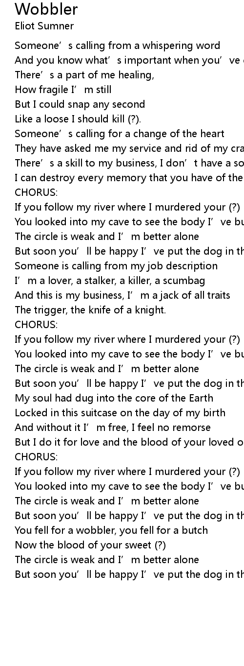 | If you follow my river where I murdered your ? | |