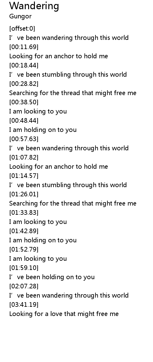 | [03:36.94] | I’ve been wandering through this world |