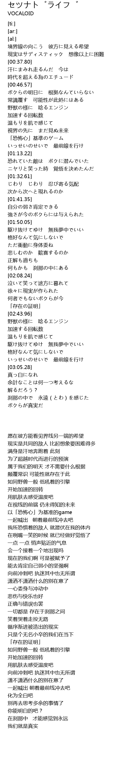 | [01:23.83] | 我所恐惧着的敌人 就潜伏在我的体内 |