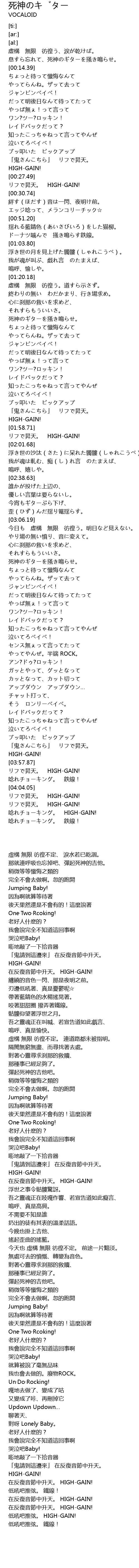 | [04:15.38] | 唸れチョーキング。 HIGH-GAIN! |