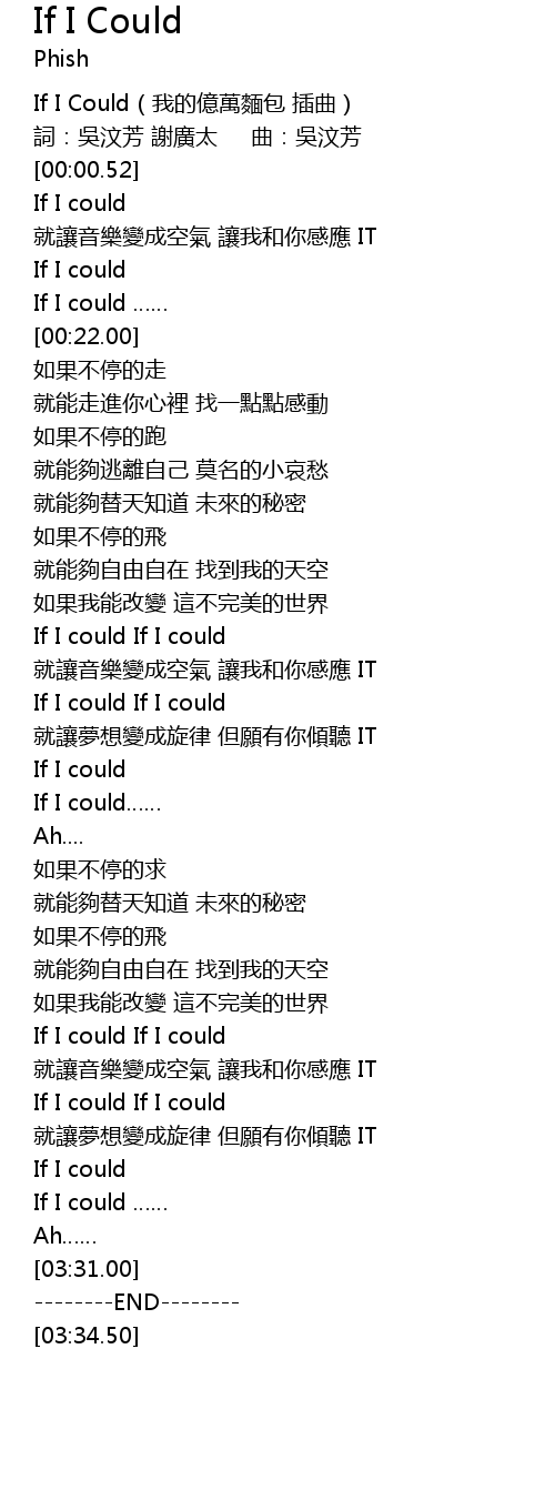 | [00:00.10] | If I Could wo de yi wan mian bao cha qu |