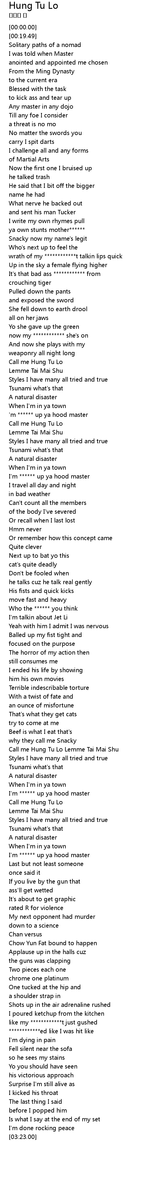 | [02:16.46] | Call me Hung Tu Lo Lemme Tai Mai Shu |