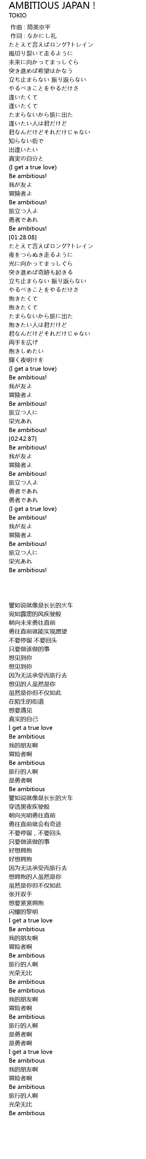 | [03:02.85] | Be ambitious! |