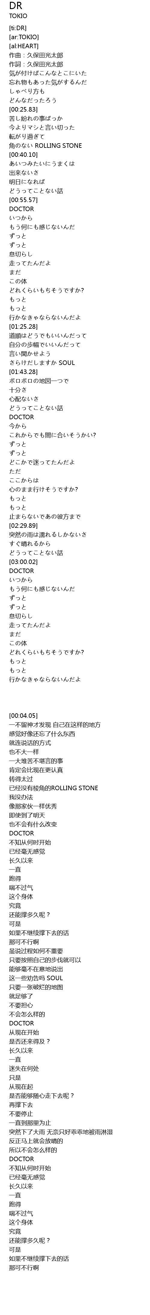 | [00:37.05] | 角のない ROLLING STONE |