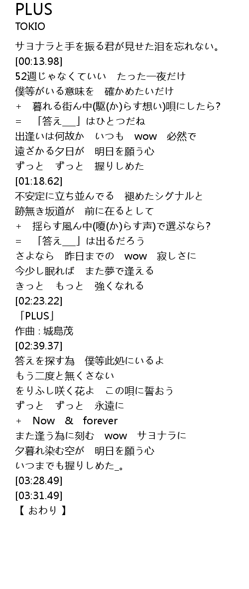 | [02:01.92] | さよなら 昨日までの wow 寂しさに |