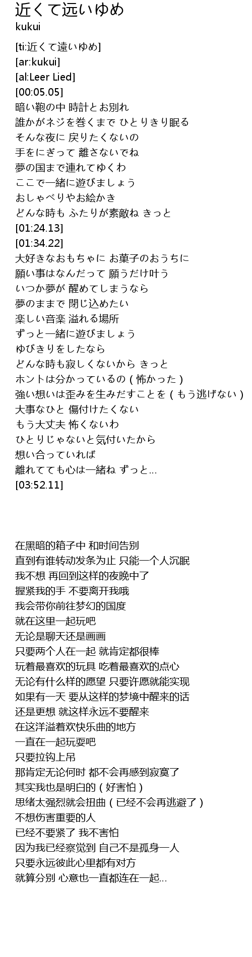 | [02:02.38] | いつか夢が 醒めてしまうなら |