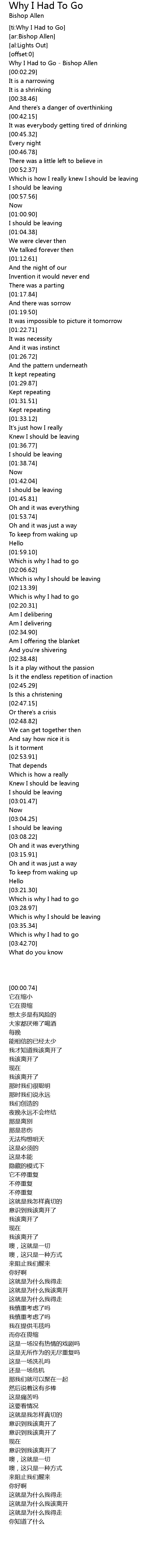 [ti:Why I Had to Go] |
