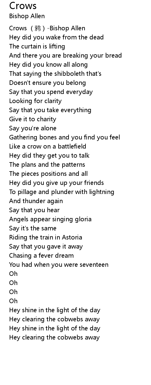 | [00:00.00] | Crows (鸦)-Bishop Allen |
