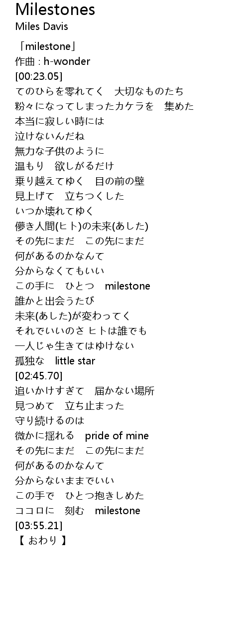 | [03:43.15] | ココロに 刻む milestone |