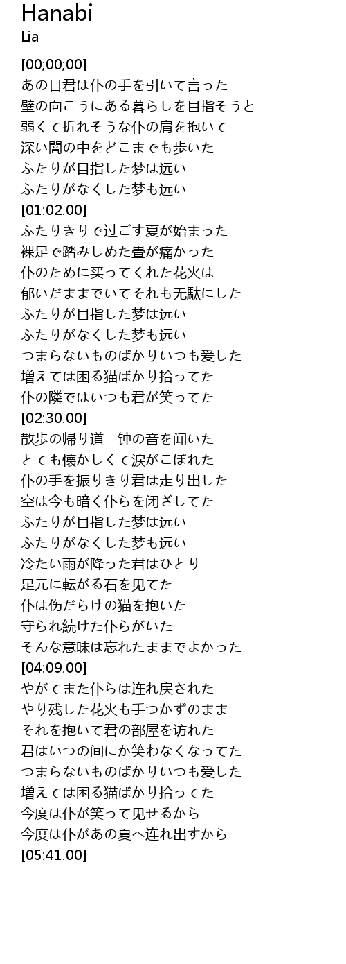 | [04:41.60] | やり残した花火も手つかずのまま |