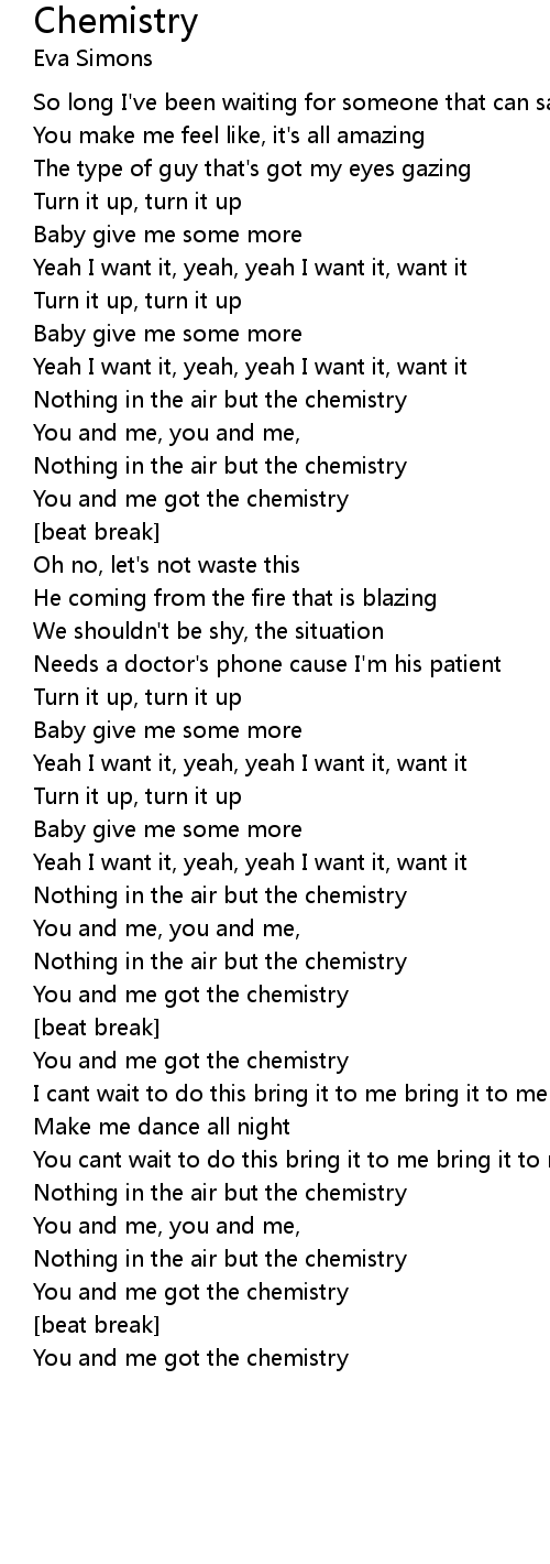 You and me got the chemistry |
