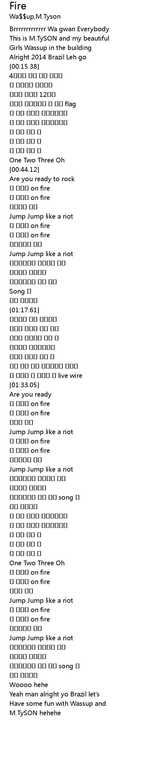 | [00:01.27] | Brrrrrrrrrrrrr Wa gwan Everybody |
