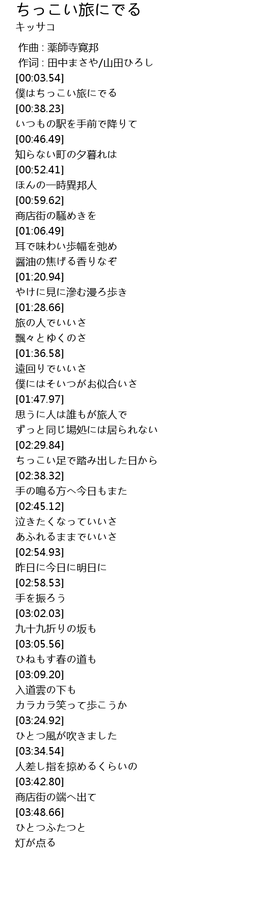 | [00:33.07] | 僕はちっこい旅にでる |