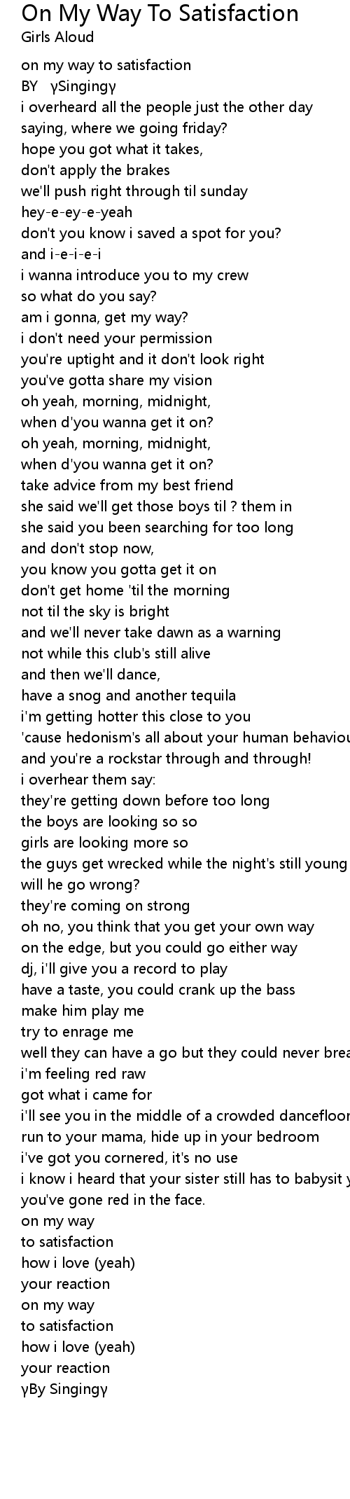 | [00:03.23] | on my way to satisfaction |