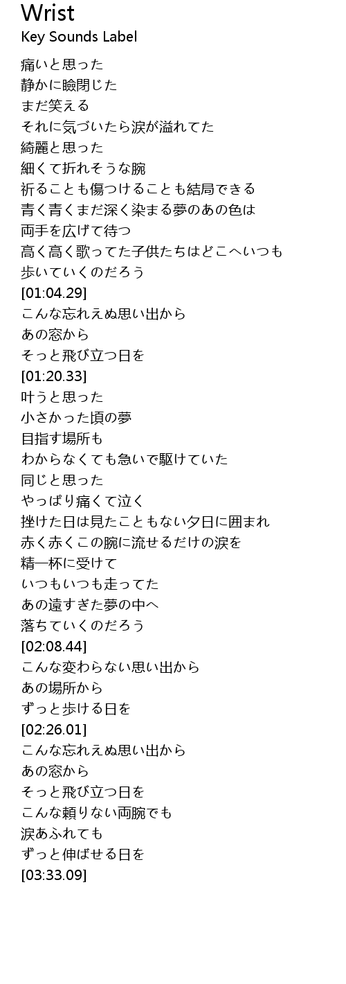| [00:56.63] | 高く高く歌ってた子供たちはどこへいつも |