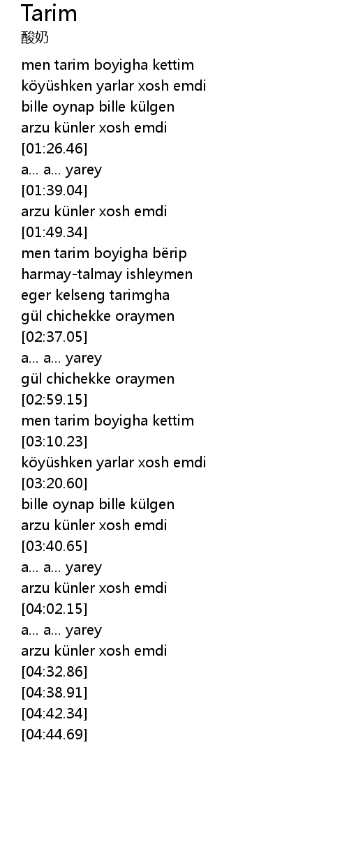 | [03:00.91] | men tarim boyigha kettim |