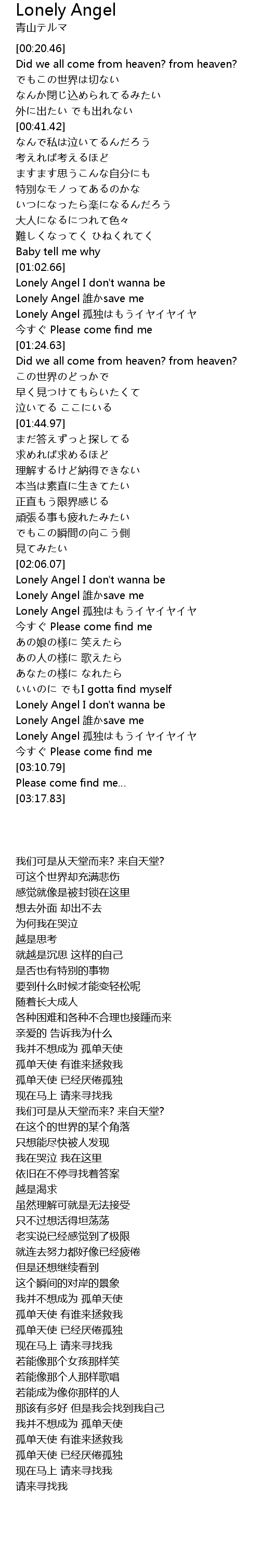 | [02:49.04] | Lonely Angel I don't wanna be |