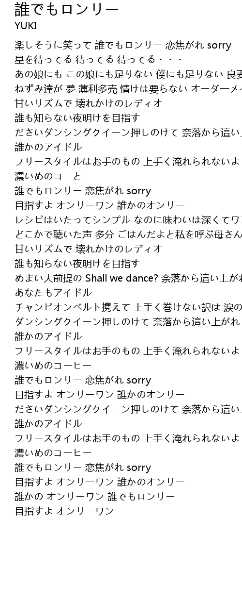 | 楽しそうに笑って 誰でもロンリー 恋焦がれ sorry | |