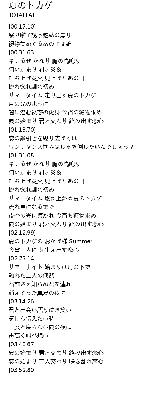 | [03:41.12] | 夏の始まり 君と交わり 絡み出す恋心 |