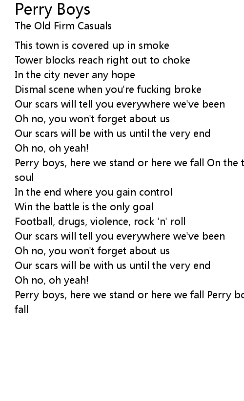 Perry boys, here we stand or here we fall On the terrace where you earned your soul |