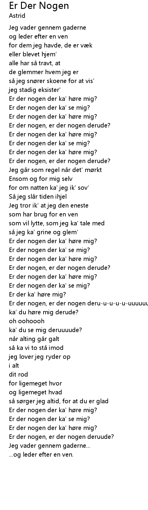 | Er der nogen, er der nogen deruude? | |